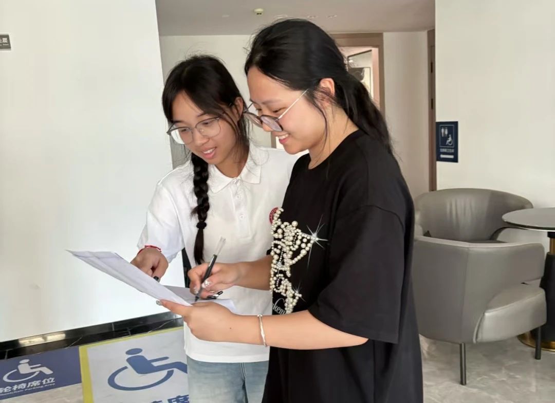 实践团成员于台州市志愿者服务中心进行问卷发放